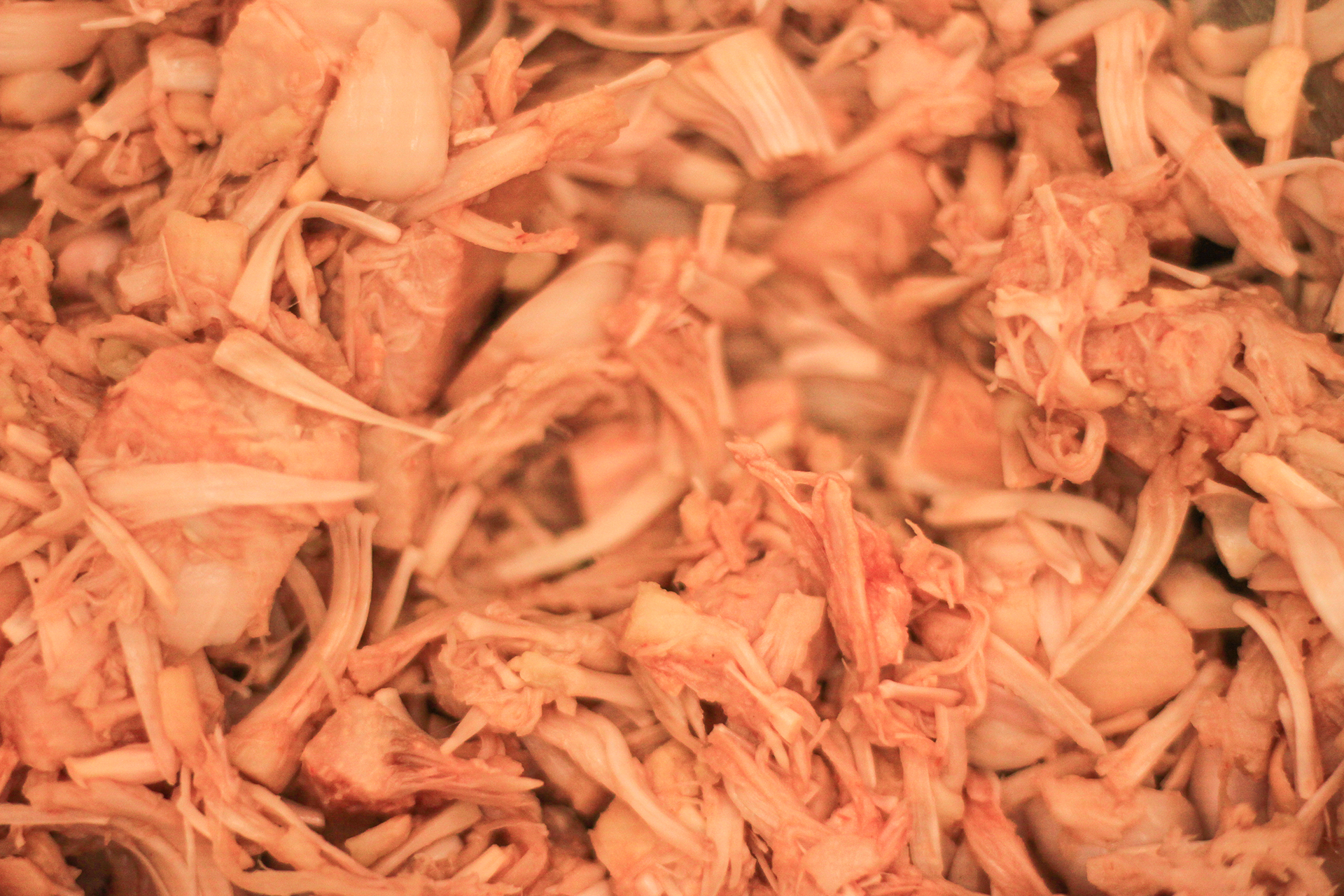 Make sure to drain them and pat them dry with a reusable towel. How I shredded the jackfruit was from using my hands or using a food processor. Although, when using a food processor you need to pulse a few times so it prevents it from mushing.